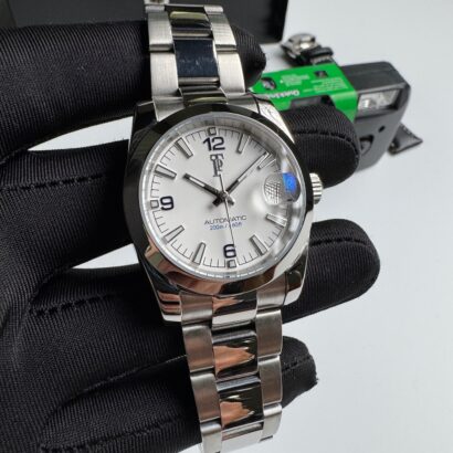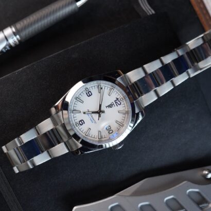 The Terra Voyager Classic captures the spirit of exploration in a clean, confident design. With a crisp white dial, bold numerals, and a brushed stainless steel bracelet, it’s built for those who value function, durability, and timeless style.